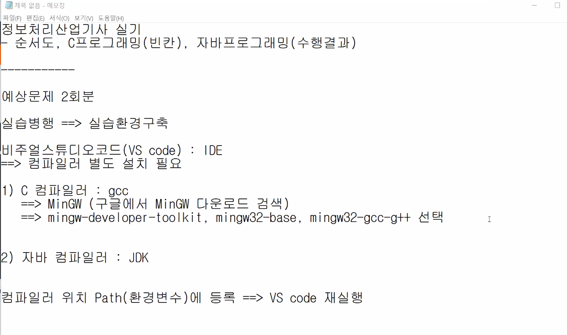 C언어 컴파일러 gcc 설치한 후 , 컴퓨터가 인식 할 수 있게 PATH 등록