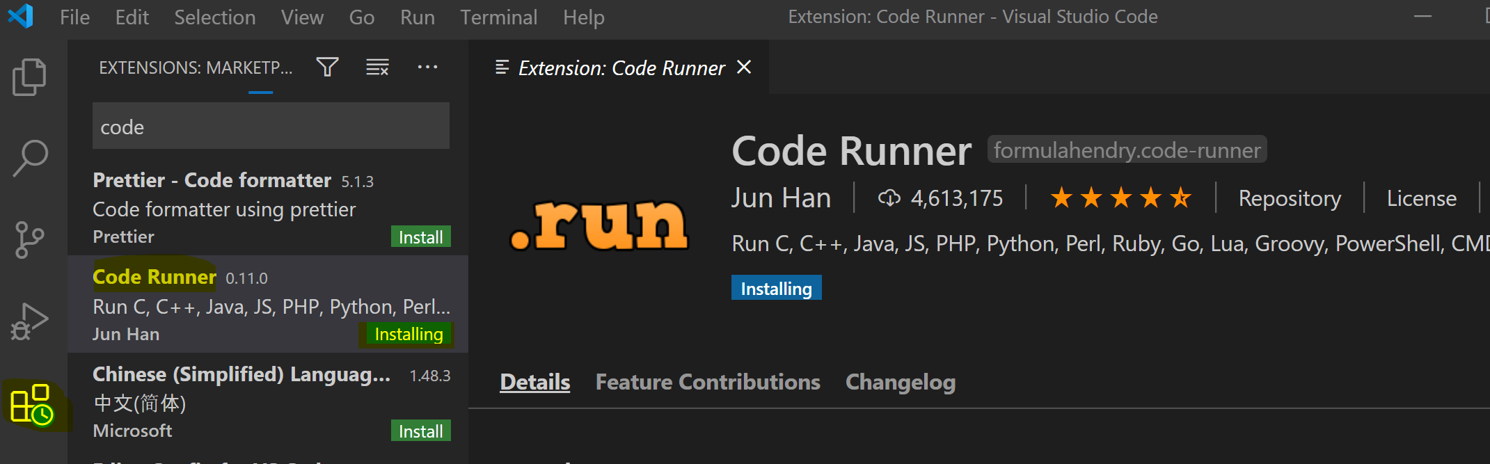확장 설정 -> Run in terminal 체크 ! (사용자 입력 받기 위해서)