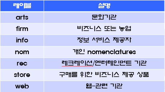 3자로 끝나면 우리나라에서 관리 하는게 x NIC에서 관리 (일반 최상위 도메인)
