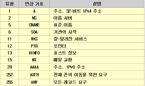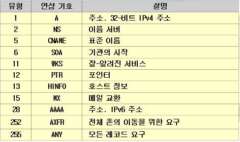 - DNS 클라이언트는 보통 첨자의 항목을 가짐