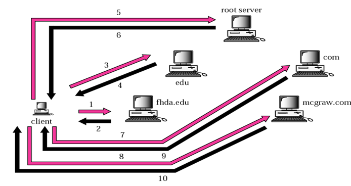 - 새로 선택된 서버가 문제를 해결할 수 있으면 질의에 대한 IP 주소를 답하게 되고 그렇지 않으면, 새로운 서버의 IP 주소를 되돌려 줌