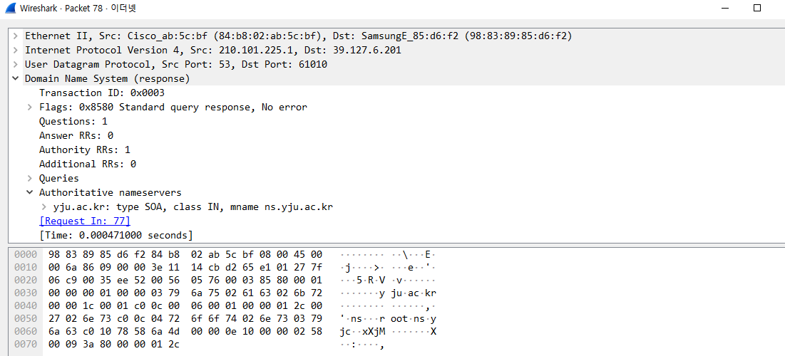 - 그러나 클라이언트에게 지금 이 응답이 권위 있는 기관이 아니라 캐쉬 메모리에서 얻어진 것임을 알리기 위해 서버는 응답을 인증 받지 못했다(unauthoritative)는 표시를 하여 보냄