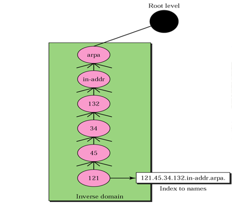 - 인버스 도메인(inverse domain)은 주소를 이름으로 매핑하는데 사용되며, 서버가 클라이언트로부터 이러한 업무를 요청 받은경우에 일어날 수 있음