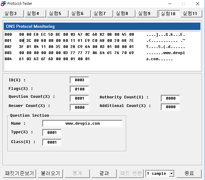 이 16비트 필드는 메시지의 질의 섹션내의 질의 수를 포함