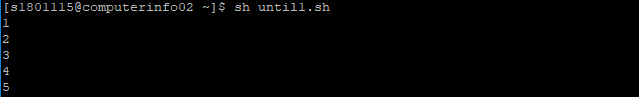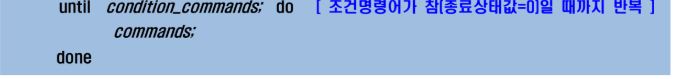 until문은 while문과 반대로 조건명령어가 거짓(종료상태값=1)이면 반복하고, 조건명령어