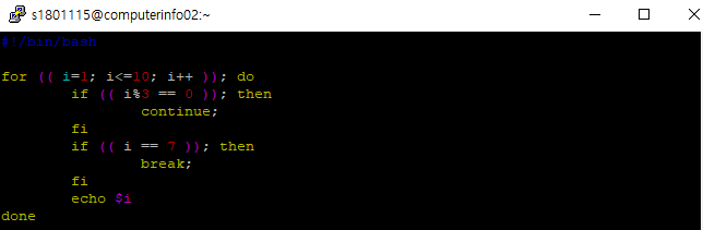 쉘의 분기문에는 break 명령어와 continue 명령어가 쓰인다.
